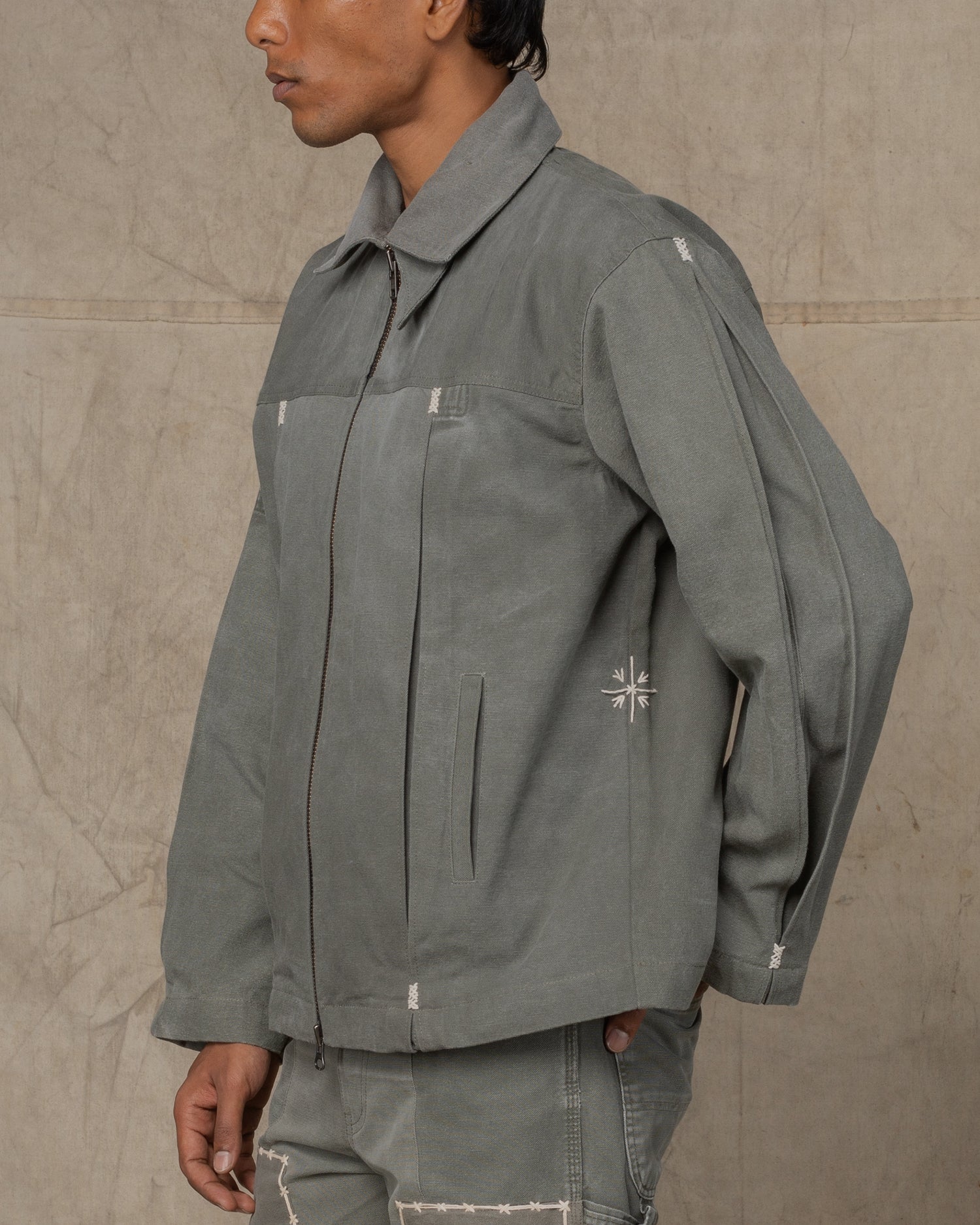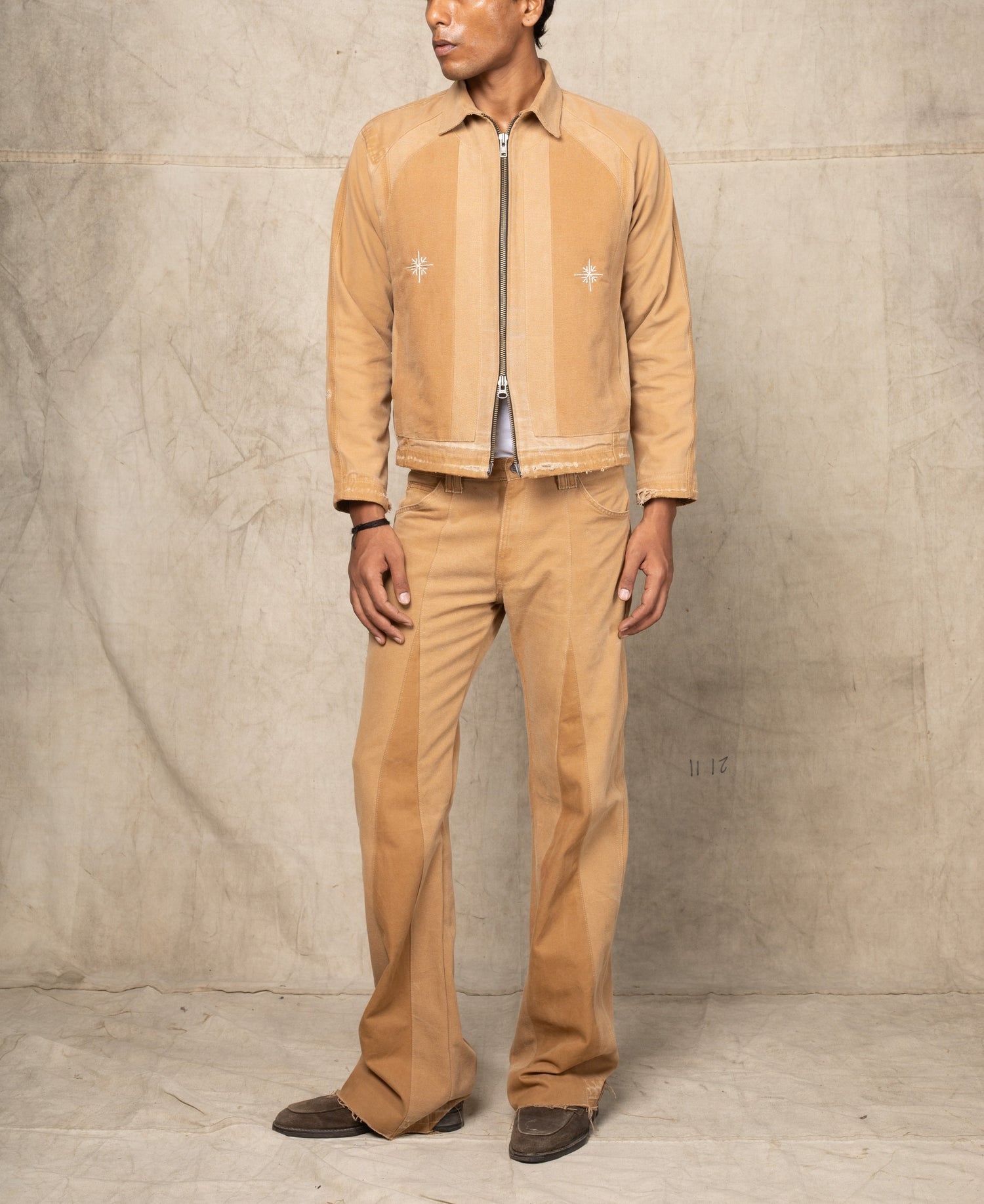 Through its evolving explorations, Arkivum moves from Natural Patina, where stains, frays, and paint splatter are embraced as part of the material’s slow becoming, to Daftar, where pinstripes from another life are reworked into structured essentials. Further traversing into Prints, where old whites and faded denims absorb pattern as memory, through the Back of the Embroidery, where floral threads run in reverse, raw and unfiltered, and finally to the Jungle, where forest-printed garments echo the landscapes they once lived in.